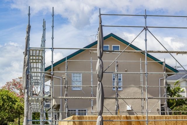 外装事業 外壁・屋根・雨樋工事 外装は建物を守る“盾”です。 株式会社アイ・ビルドでは、外壁・屋根・雨樋の各工事を通じて、風雨や紫外線から建物を保護し、長期 的な耐久性を高めます。 新築・既存建物問わず、確かな技術で安心の施工をお届けします。 魅力的な住まいを実現サイディング工事 サイディングは外観を美しくし、断熱や防水効果を提供して建物の耐久性を高めます。外壁のリフォームとイメージチェンジを同時に実現できるため、耐用年数に合わせたメンテナンスがおすすめです。 外壁塗装工事 建物の美観を保ち、耐久性を高める重要なメンテナンスです。定期的な塗装で建物の寿命を延ばし、劣化を防ぎます。ご自宅はもちろん、アパートやマンションの工事も承ります。 風雨や雪から家を守る屋根工事 風雨からお住まいを守るため、頑丈で耐久性のある屋根工事を行っています。定期的な保守と修理も大切です。当社ではメンテナンスも承っておりますので、どうぞお気軽にお問い合わせください。 築年数が経過した屋根の塗装・葺替工事 新築以来、大切なお住まいを守ってきた屋根の塗装や屋根材。しかし、屋根材にも寿命があります。定期的な点検を行い、雨漏りなどの問題が発生する前に修理や葺き替え工事を行うことをおすすめします。これらの工事もぜひお任せください。 屋上やバルコニーなどのFRP防水工事 防水は雨漏りから住宅を守るために必要な工事のひとつです。特にFRP防水は強度や防水性が高いことや、他の防水工事と比べて優れている点が存在するため、多くの建物で採用されています。 雨樋工事 雨樋工事は、屋根から降る雨水を集めて、適切な排水ルートに導くための大切な工事です。この工事によって、屋根や外壁を守り、地盤への水の浸透を防ぐことができます。その結果、建物の劣化を防ぐことができるのです。定期的なメンテナンスと清掃も欠かせません。 仮設足場設置工事 建物の外壁の塗装、メンテナンス、修理、新築工事などで必要不可欠な足場設置工事もお任せください。